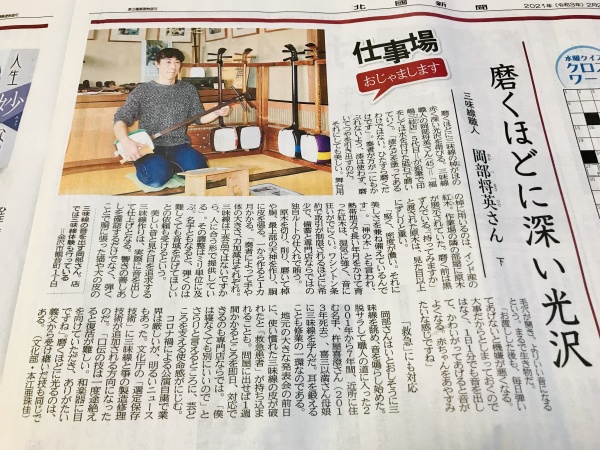 取材して頂いた記者さんが三味線に興味がある方で、あまり普段の撮影や取材ではお話ししないような事まで、結構詳しくお話しさせて頂きました。