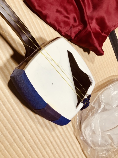 お客様が介護の関係で10年以上していなかったお三味線ですが、皮もきれいになり、さわりや細かいところもメンテナンスして、音も蘇りました。